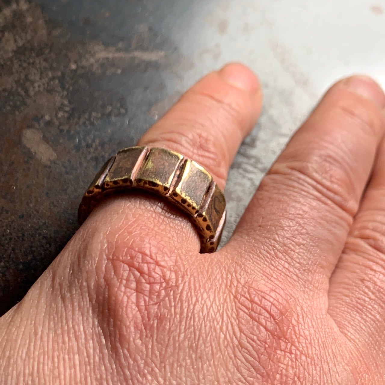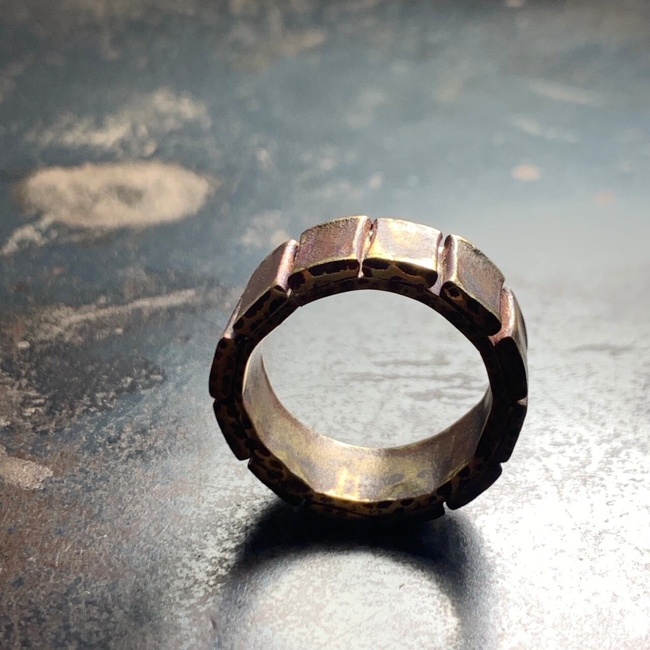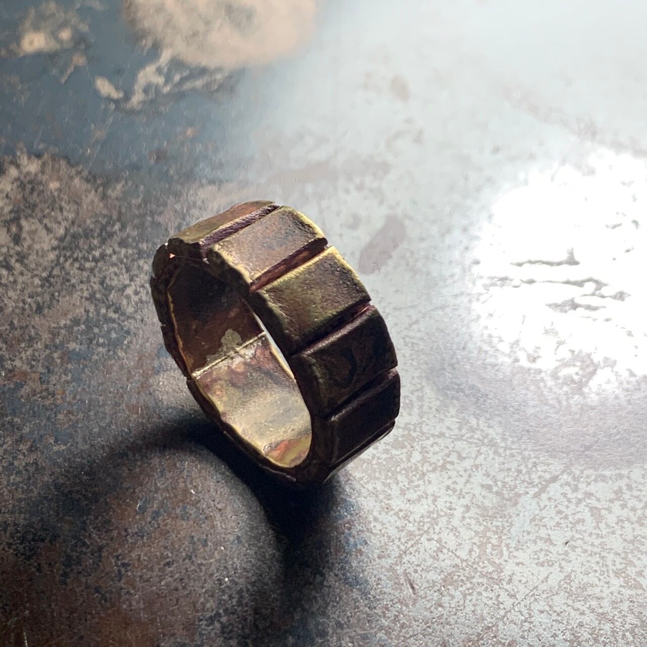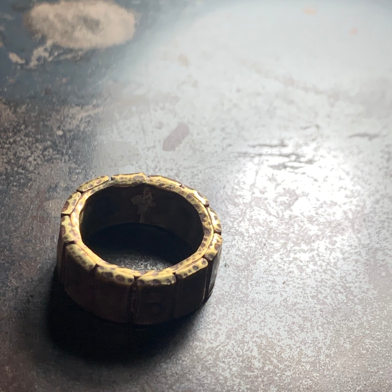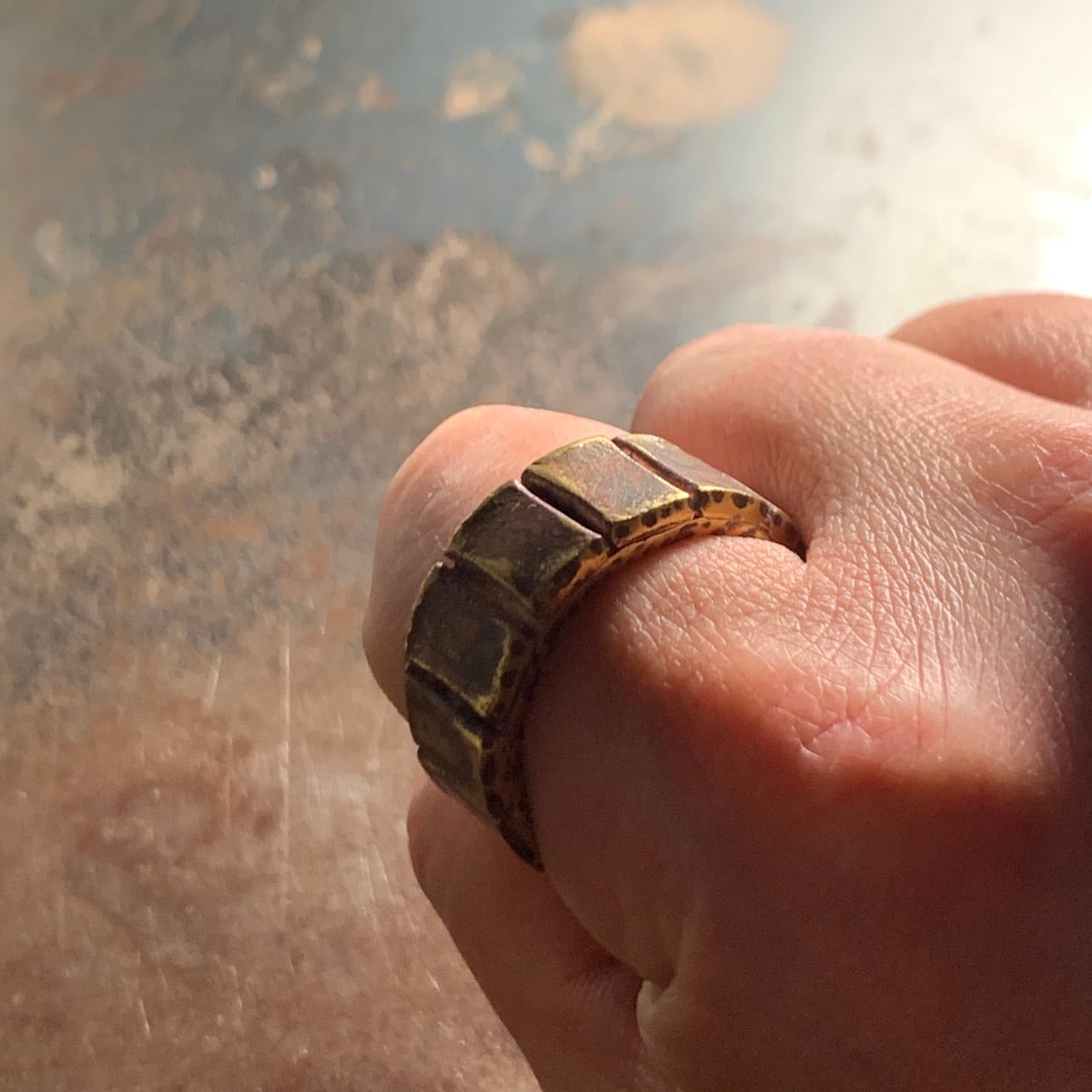 「PLATES」 brass ring 24号 四角い板が全面を覆うリング 一つ一つの四角いパーツはよくみるとランダムな形でできている